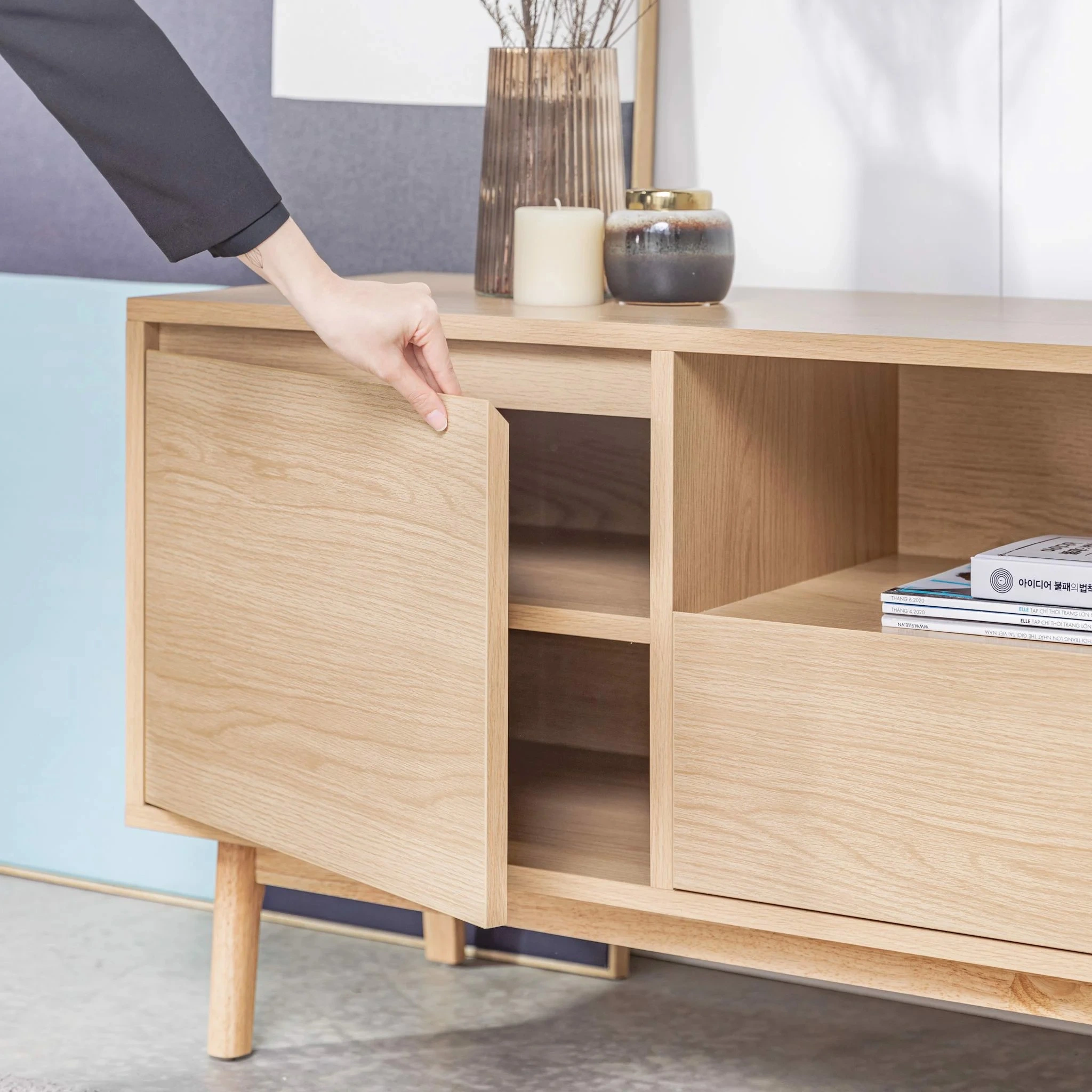 Với các đường nét thiết kế tinh tế, tủ kệ tivi hiện đại phù hợp với nhiều phong cách nội thất, mang đến sự hài hoà cho không gian nội thất phòng khách gia đình bạn.